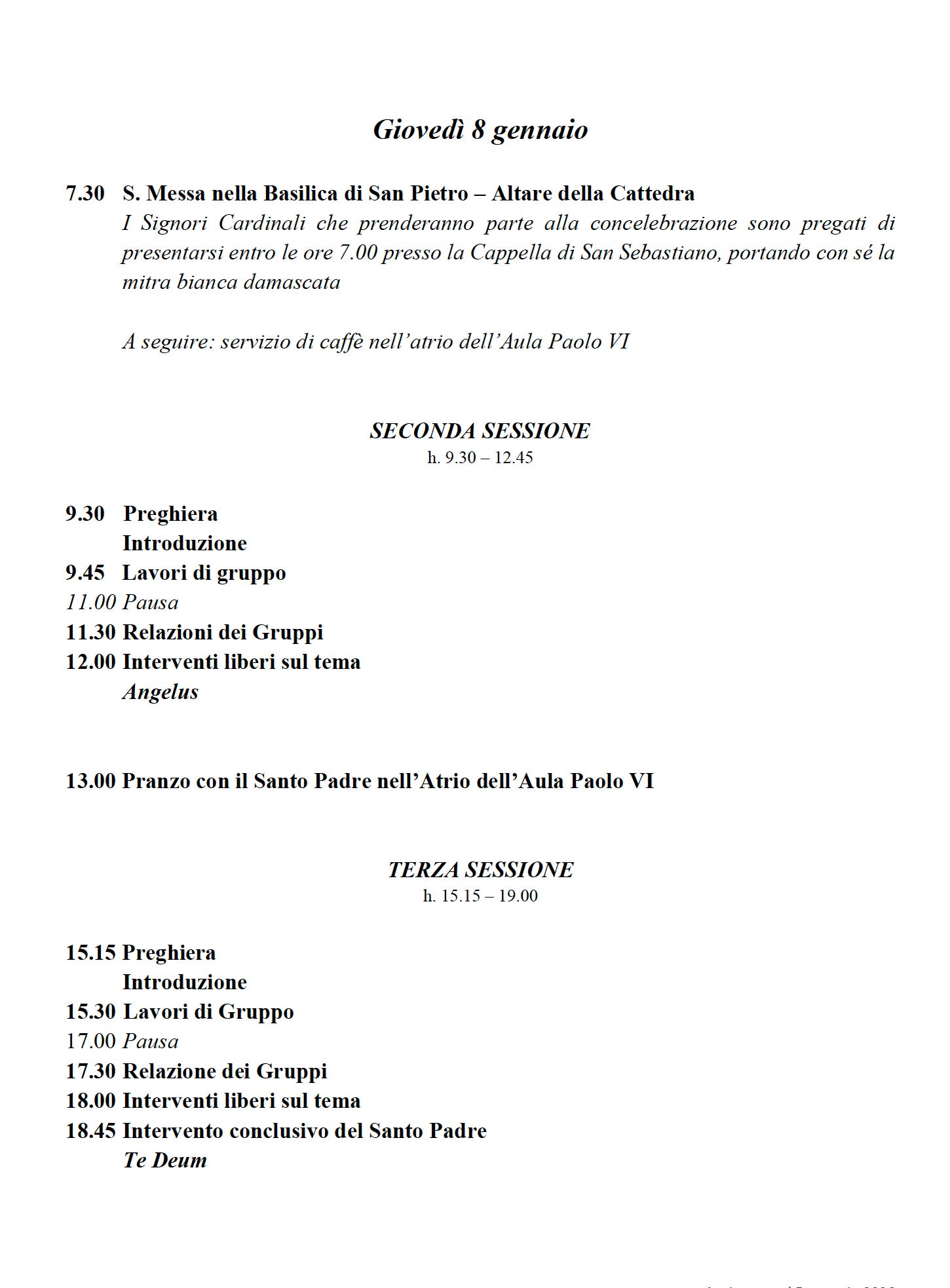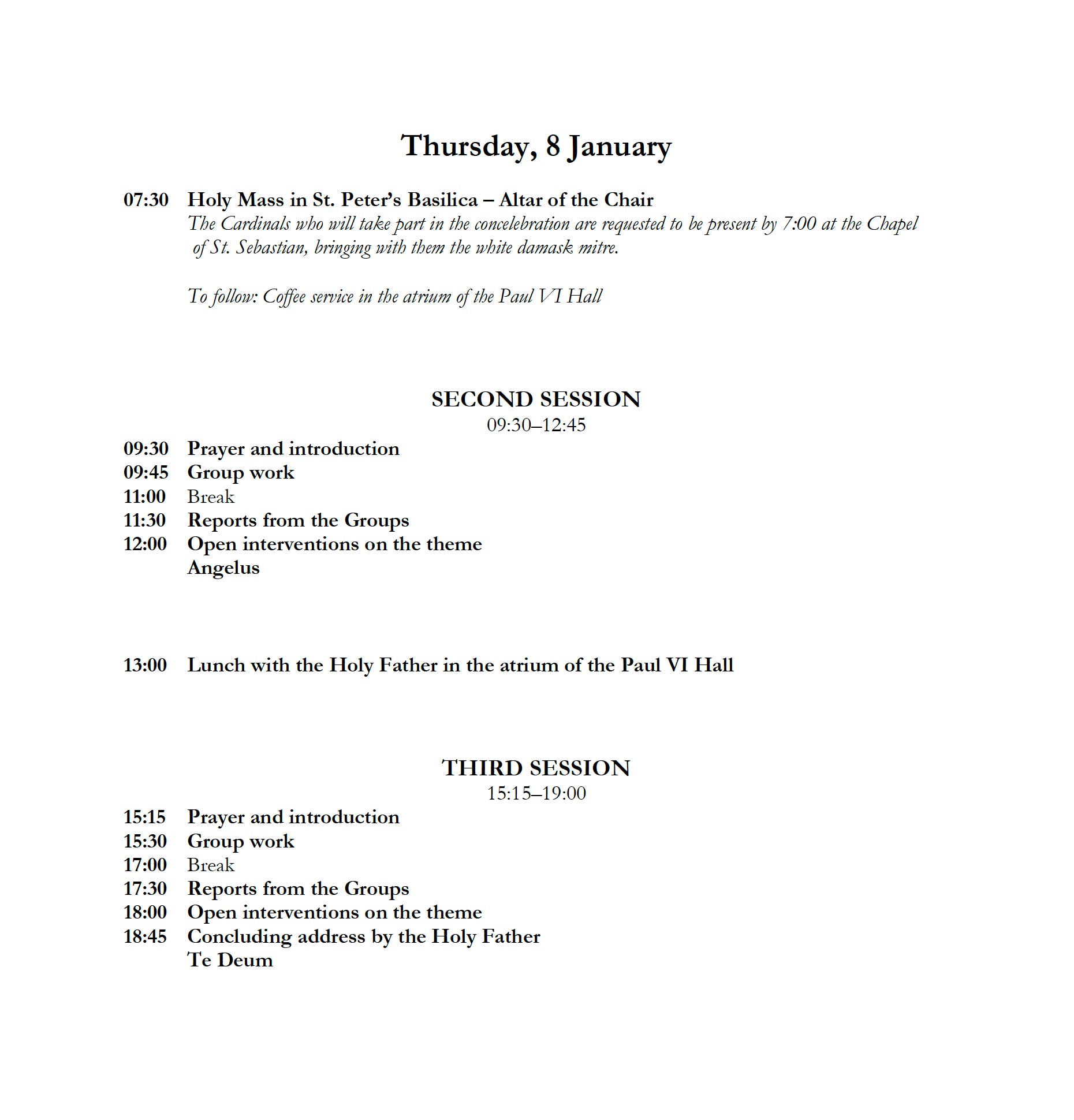 The schedule for the January 7-8 meeting includes just two 45-minute periods for free interventions from members of the Sacred College.